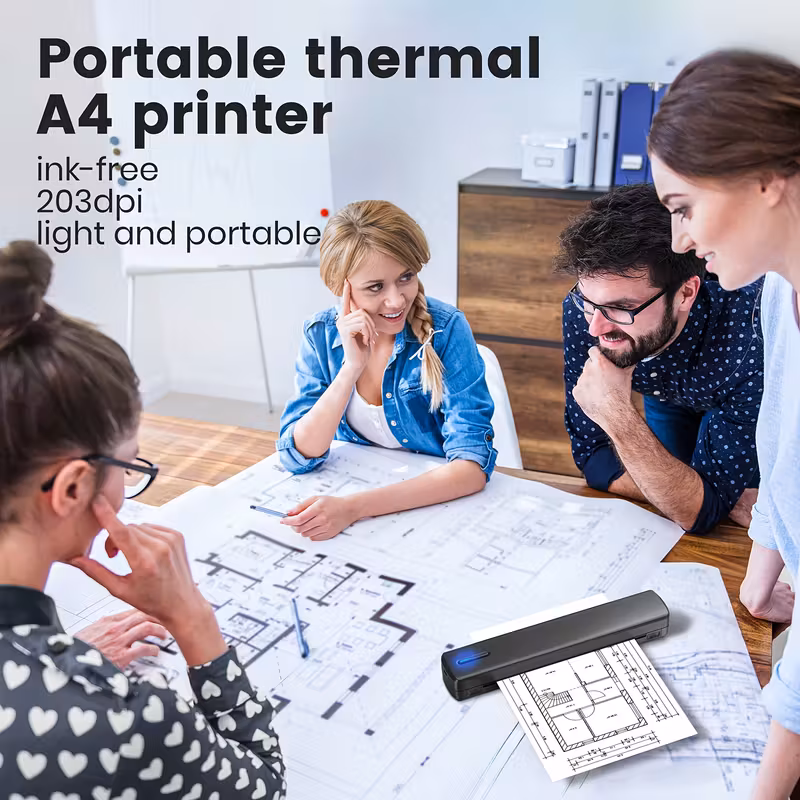 Our portable printer is built to make printing easier wherever life takes you whether you're traveling, in the office, attending a meeting, or working remotely. It’s perfect for printing business documents, study notes, tickets, photos, and receipts with complete convenience. Thanks to instant wireless printing, you can print directly from your smartphone or laptop without installing any drivers. With eco-friendly inkless thermal technology, you save money and avoid the mess of traditional cartridges.
